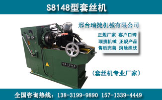 瑞捷套絲機設備采用液壓裝置成功解決勞動強度大,效率低,且無定位裝置,絲扣長短難控制等弊端,可一次型完成螺紋加工成型且螺紋牙形飽滿光滑。套絲機的主要部件及結構是由套絲機床的傳動系統,支架系統,切線板牙頭,定位裝置及液壓系統組成,工作時只要將工件裝入夾鉗,其余程序將自動完成,操作簡單,通俗易懂,瑞捷套絲機廠家直銷,質量有保證,減少不必要的中間環節,為客戶帶來實實在在的優惠政策,歡迎新老客戶洽談合作事宜和來電咨詢.